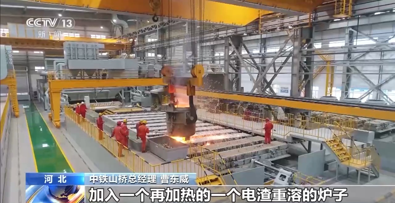 中鐵山橋總經(jīng)理 曹東威:一個(gè)是真空精煉爐, 也就是說(shuō)去除有害的氣體,氫、氮、氧。還有在冶煉的后續環(huán)節加入一個(gè)再加熱的電渣重熔爐子,這樣整個(gè)出鋼水的質(zhì)量等級會(huì )大幅提高。